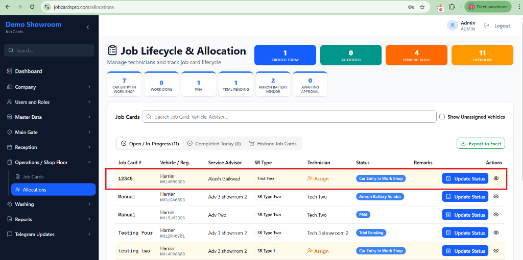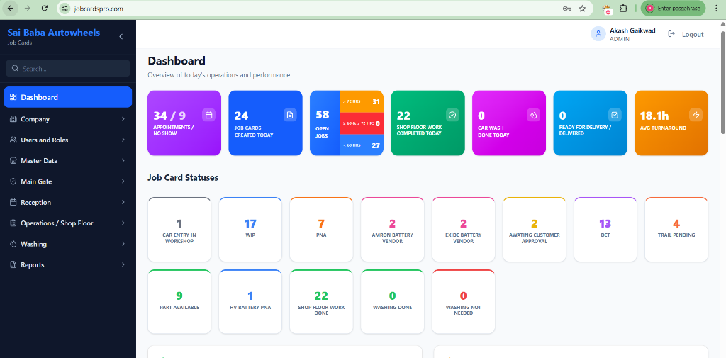 JobCardsPro is a cloud-based workshop management system that helps automobile showrooms manage the entire lifecycle of a vehicle's service visit β from the moment the car enters the gate to the moment it's delivered back to the customer.